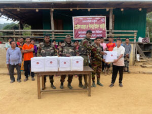 দি ম্যাজেস্টিক টাইগারস এর অধিনায়কের পক্ষে পাড়াবাসীর জন্য খাদ্য সামগ্রী(চাল ৪০ কেজি, ডাল ১০ কেজি, তেল ১০ লিটার, চিনি ১০ কেজি, চা পাতা ৫ কেজি, লবণ ৫ কেজি ও আনুষাঙ্গিক মসলা) বিতরণ করেন সেনা সাব জোনের সাবজোন কমান্ডার।